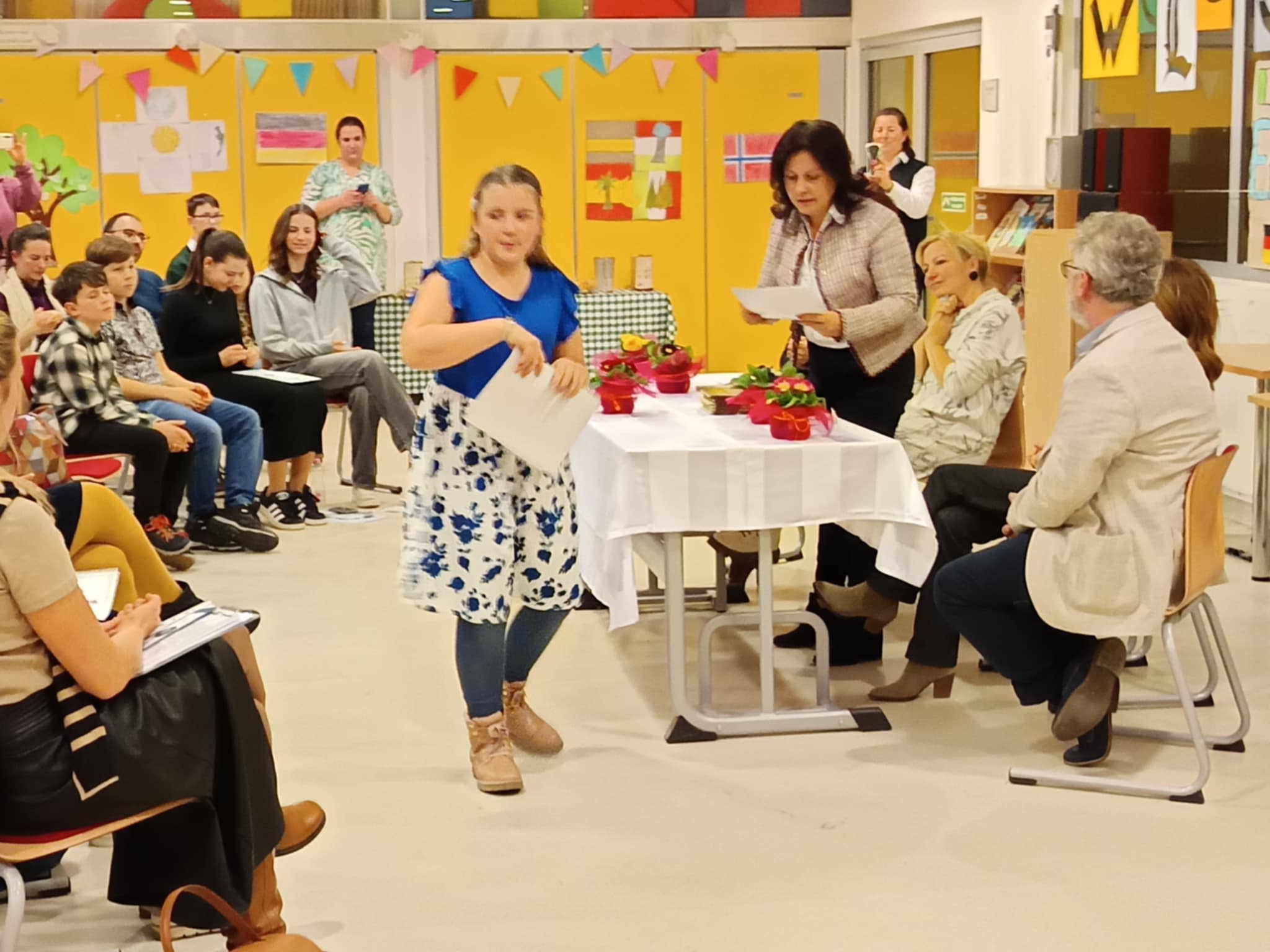 A versenyt Simsik Zsuzsanna igazgatónőnk nyitotta meg. Egy rövid műsorral kedveskedtünk vendégeinknek. Szabó-Kazár Ádám, 6.d osztályos tanulónk zongorajátékával és a 6.b osztály kamarakórusa egy megzenésített Weöres Sándor verssel segített oldani a verseny előtti feszültséget. Az 5. és 6. osztályosok számára a területi fordulón véget ért a versenyzés. A 7. és 8. osztályosok korcsoportjából a legeredményesebb versenyző, aki idén a Kesjár Csaba Általános Iskola diákja lett, jutott tovább a Kisújszálláson megrendezésre kerülő országos döntőbe. Az eredményhirdetés után a minden zsűritag megosztotta gondolatait, észrevételeit a résztvevőkkel, és szakmai tanácsokkal látta el a versenyzőket.